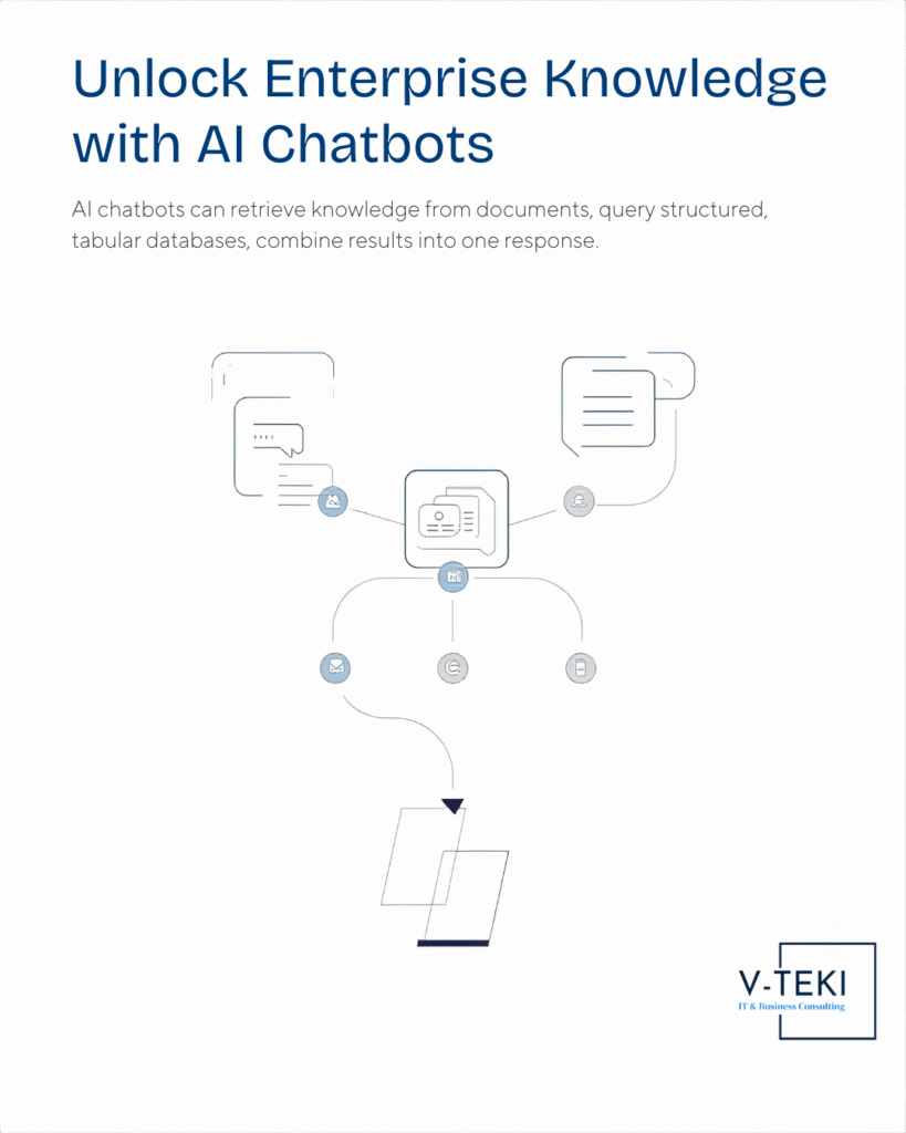 By combining document intelligence, database querying, and retrieval-augmented generation (RAG), chatbots can retrieve information from both unstructured documents and tabular data, then deliver clear and contextual answers through natural language.